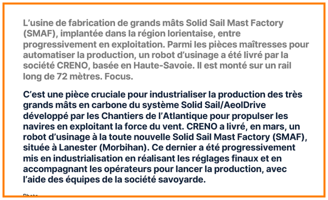 01/09/2025- Robot d'usinage pour l'usine Solid Sail Mast Factory (Lorient)